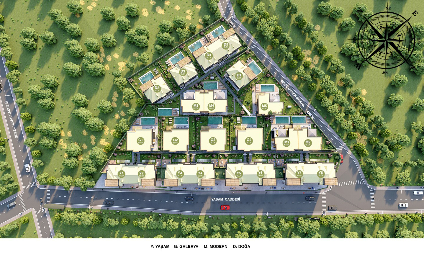 Projenin hemen altında yer alan Yaşam Çarşısı, market, kafe ve restoran gibi günlük ihtiyaçlara anında erişim sağlıyor. Müstakil bahçe ve havuzla doğanın içinde, yeşilin ve mavinin tam ortasında, yıldızların altında huzurlu bir yaşam başladı.